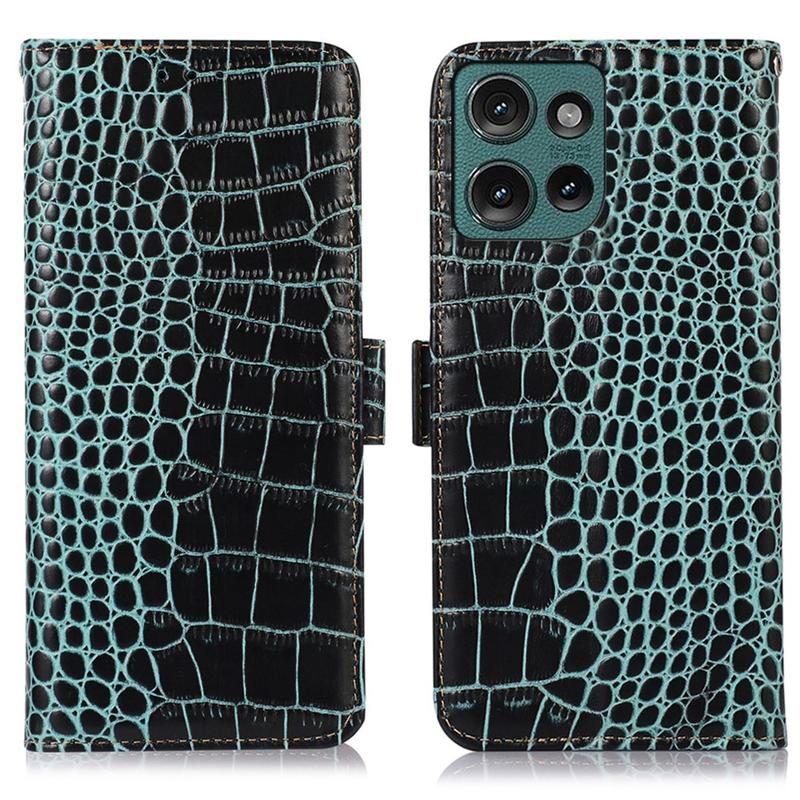 Crocodile Series Plånboksfodral i Läder med RFID till Motorola Edge 50 Neo