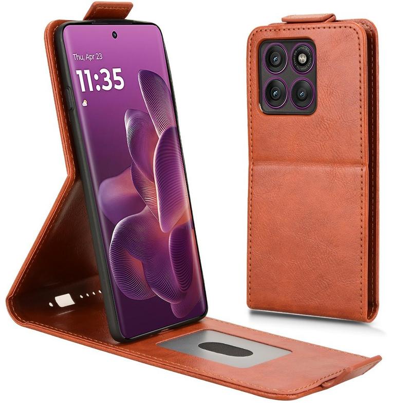 • Vertikalt flipfodral för Motorola Edge 60 Pro - magnetisk stängning, stativfunktion, korthållare