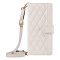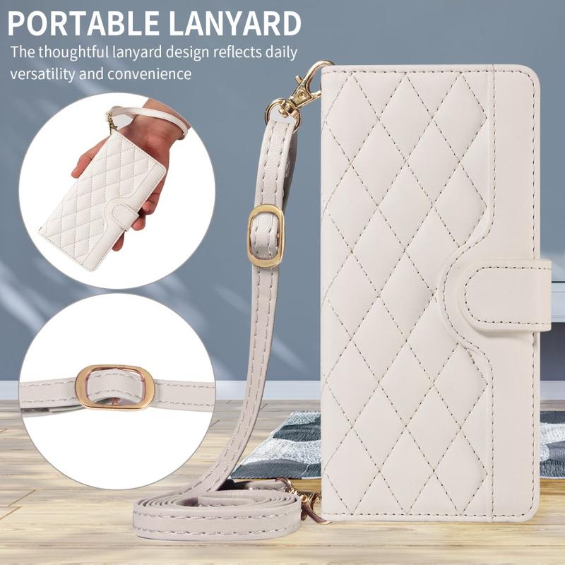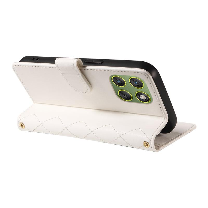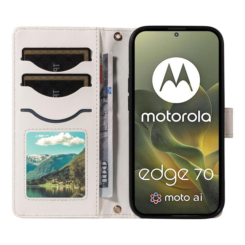 Lyxigt quiltat plånboksfodral med axel- och handledsrem för Motorola Edge 70 - skyddande fodral med rombmönster