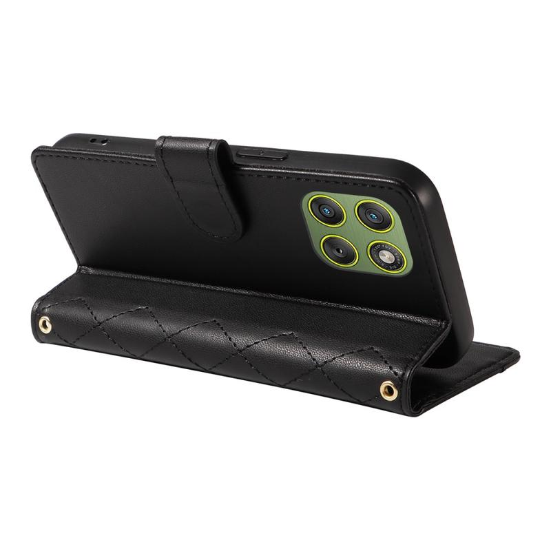 Lyxigt quiltat plånboksfodral med axel- och handledsrem för Motorola Edge 70 - skyddande fodral med rombmönster