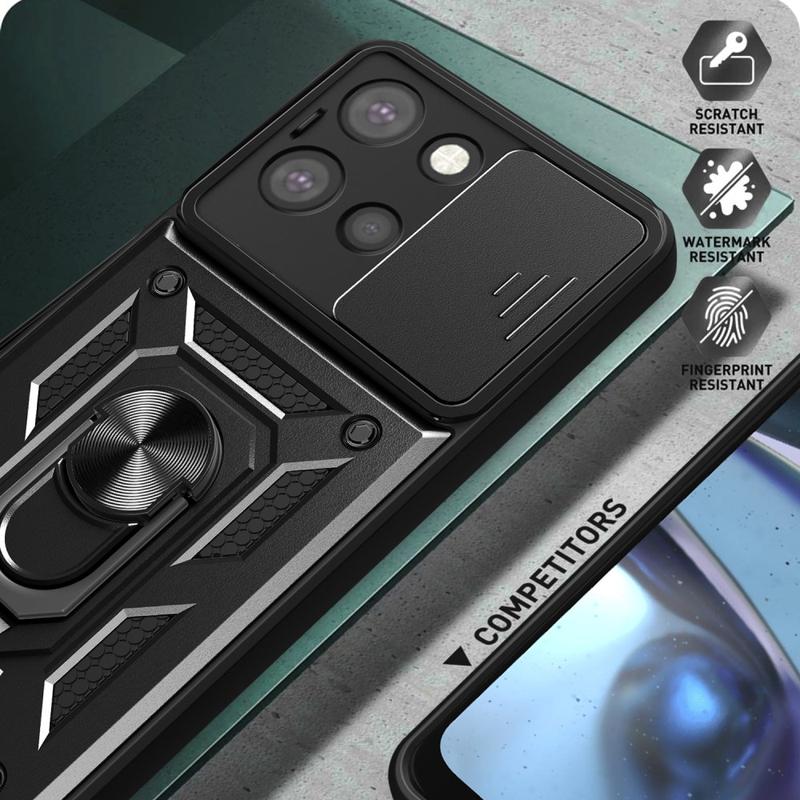 - Roterande ringhybridfodral med kameraavskärmning för Motorola Moto G (2025)