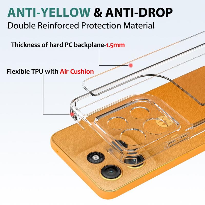 Detta tillbehör använder en kombination av akryl och TPU för att hålla din smartphone i bästa skick. Samtidigt ser förstärkta, stötabsorberande hörn till att förhindra skador från fall, medan den genomskinliga designen visar upp den vackra designen av din Motorola Moto G17 Power, Moto G17, Moto G15.