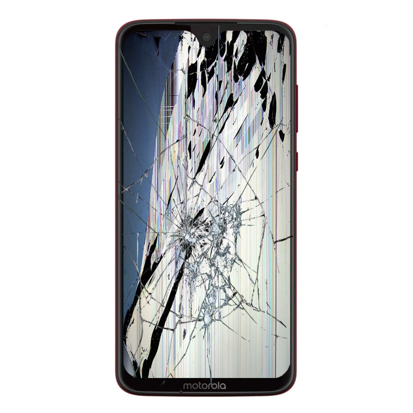 Motorola Moto G7 Plus ut som på bilden? Om pekskärmen inte svarar eller är skadad och LCD-skärmen ser konstig ut eller inte fungerar alls så behöver enhetens LCD- och pekskärm repareras.