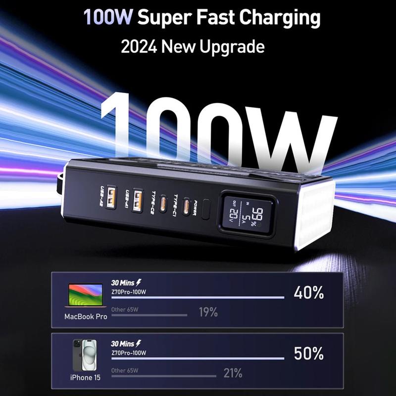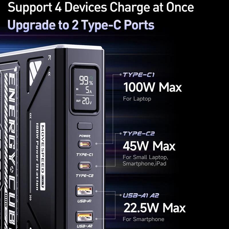 MOVESPEED YSPBZ70Pro-100 levererar laddningskraft av bärbar datorklass och exceptionell kapacitet i ett bärbart format. Med sin avancerade snabbladdningsteknik, smarta strömhantering och LCD-skärm är den den ultimata allt-i-ett-strömlösningen för krävande användare.