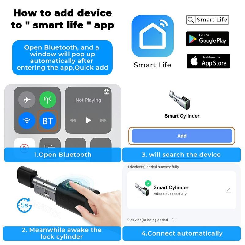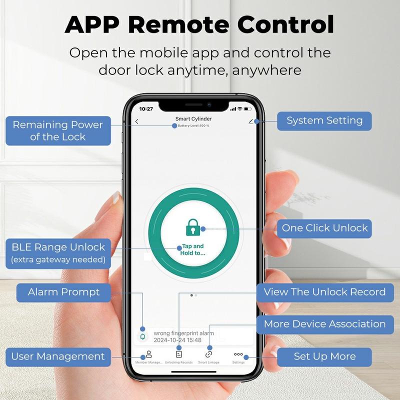 Denna smarta låscylinder stöder 5 olika upplåsningsmetoder, vilket gör det enklare att välja det alternativ som passar din vardag. Du kan låsa upp dörren via appen, fingeravtrycksigenkänning, lösenordsinmatning, IC-kort eller traditionell nyckel. Denna flexibilitet är särskilt användbar för hushåll med flera användare, gäståtkomst, kontorsmiljöer eller alla som vill ha ett bekvämare alternativ till att alltid behöva ha nycklar med sig.