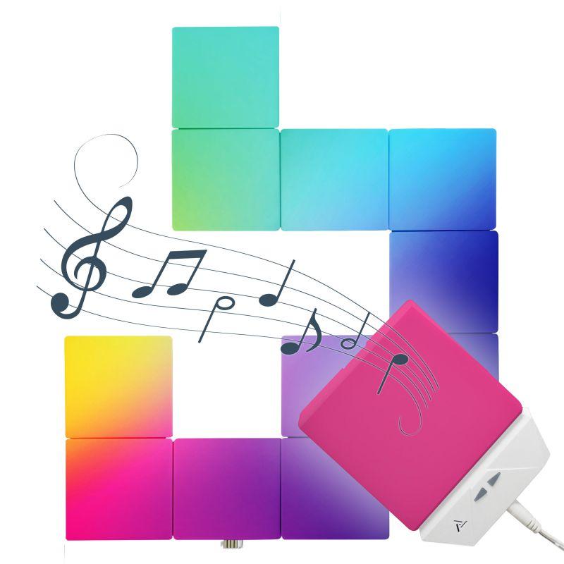Müller-Licht Magisk panelvägglampa - Uppsättning av 12 modulära LED-väggpaneler med musikläge och touchkontroll (10×10 cm)