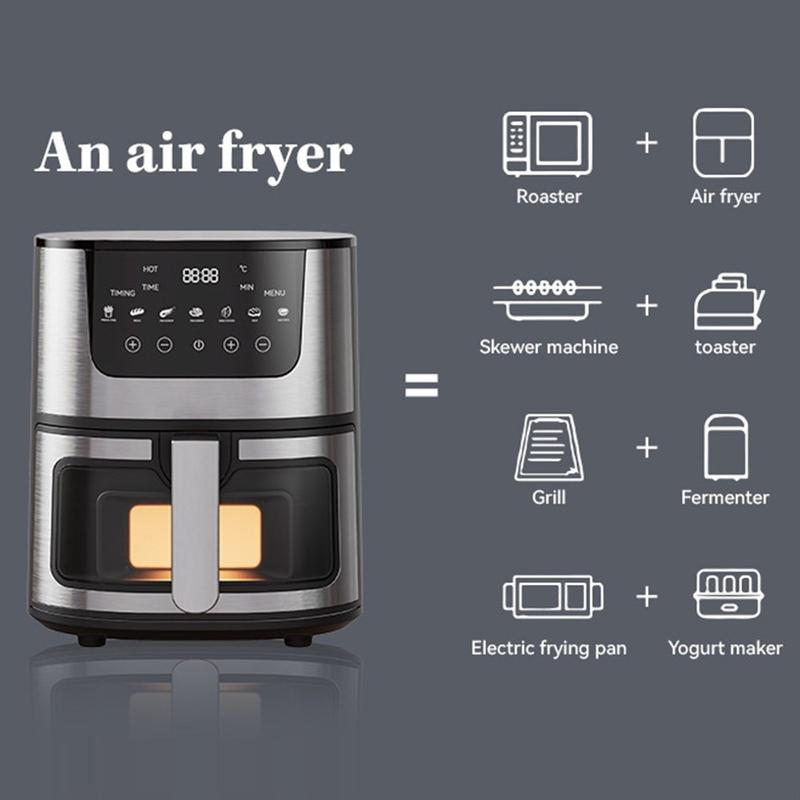 7 liter stor kapacitet 1500 W multifunktionsluftfryser i rostfritt stål med visningsfönster - EU-kontakt