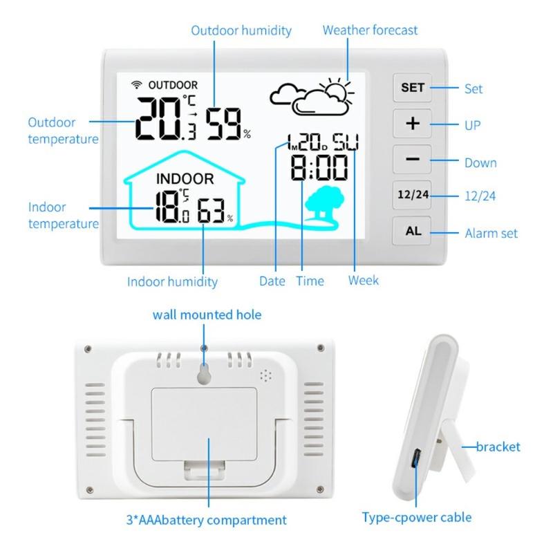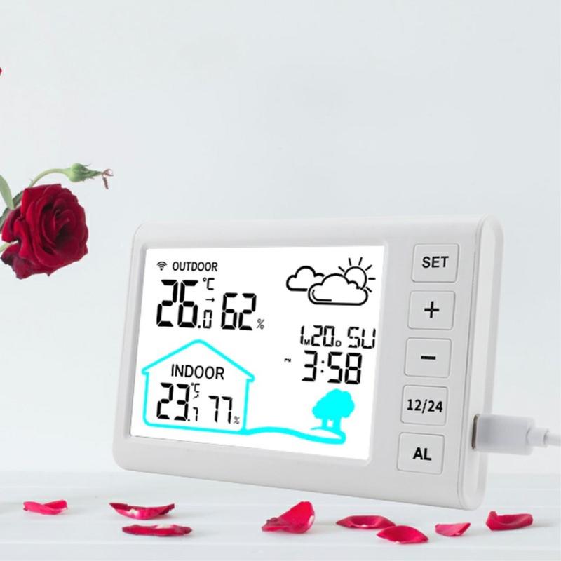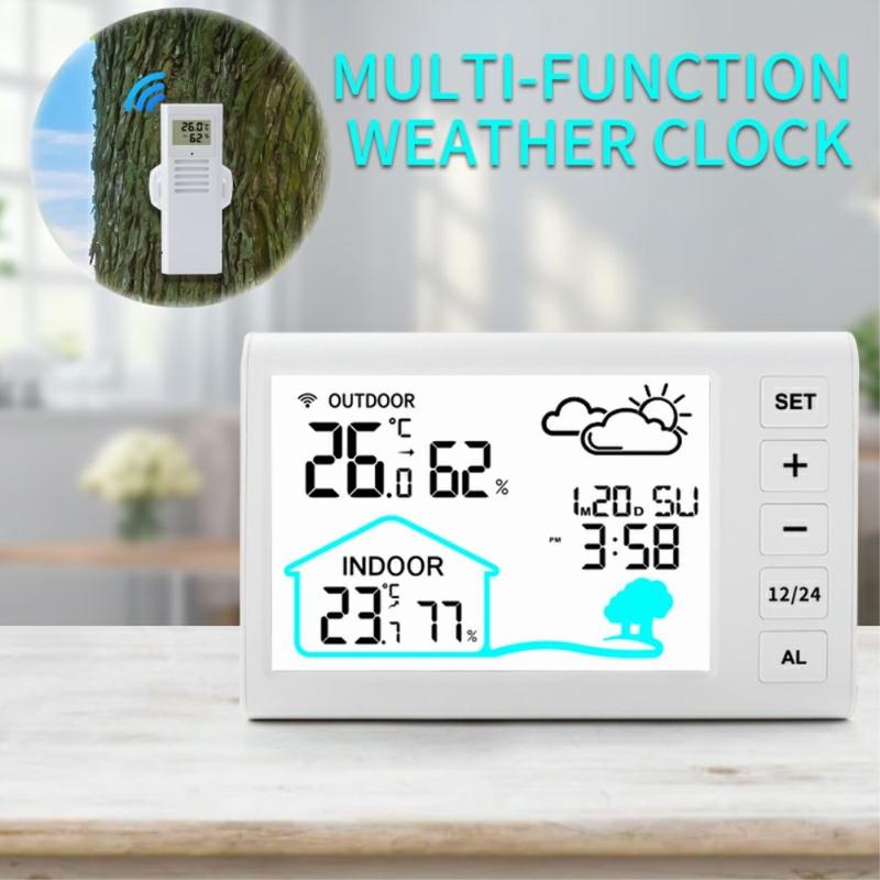 Multifunktionell trådlös väderstation för inomhus- och utomhusövervakning med väckarklocka