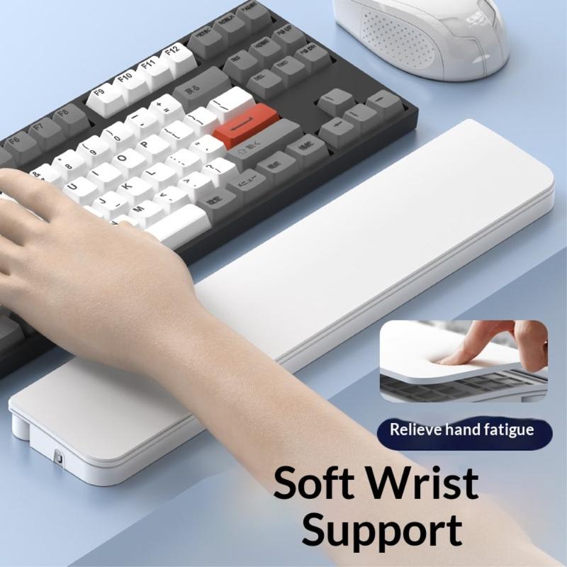 Handledsstödet är tillverkat av mjuk polyuretan och högkvalitativ skumvaddering för att ge ett mjukt och stabilt stöd för handleden. Dess ergonomiska design bidrar till att minska tryck och trötthet under långvarigt skrivande, kontorsarbete eller studier.