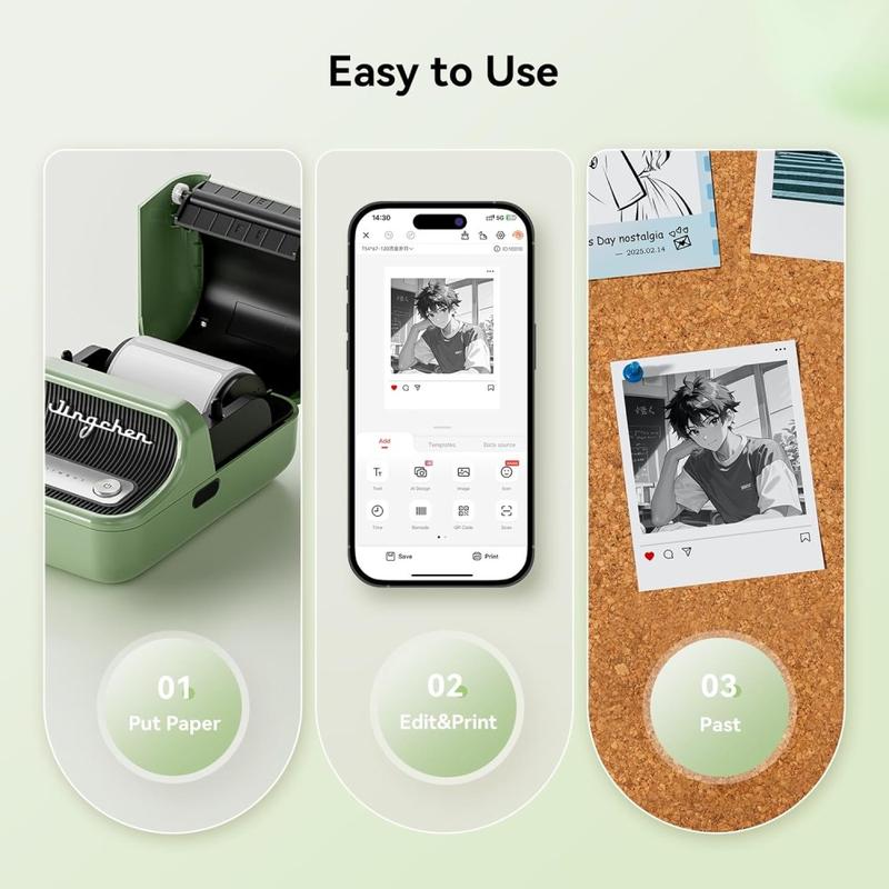 - Uppladdningsbar och effektiv - Utrustad med ett 1500 mAh-batteri som ger flera timmars utskrift per laddning; laddas enkelt via Type-C på 3-4 timmar.