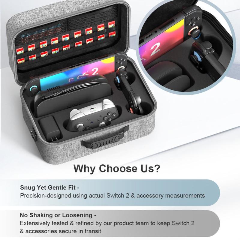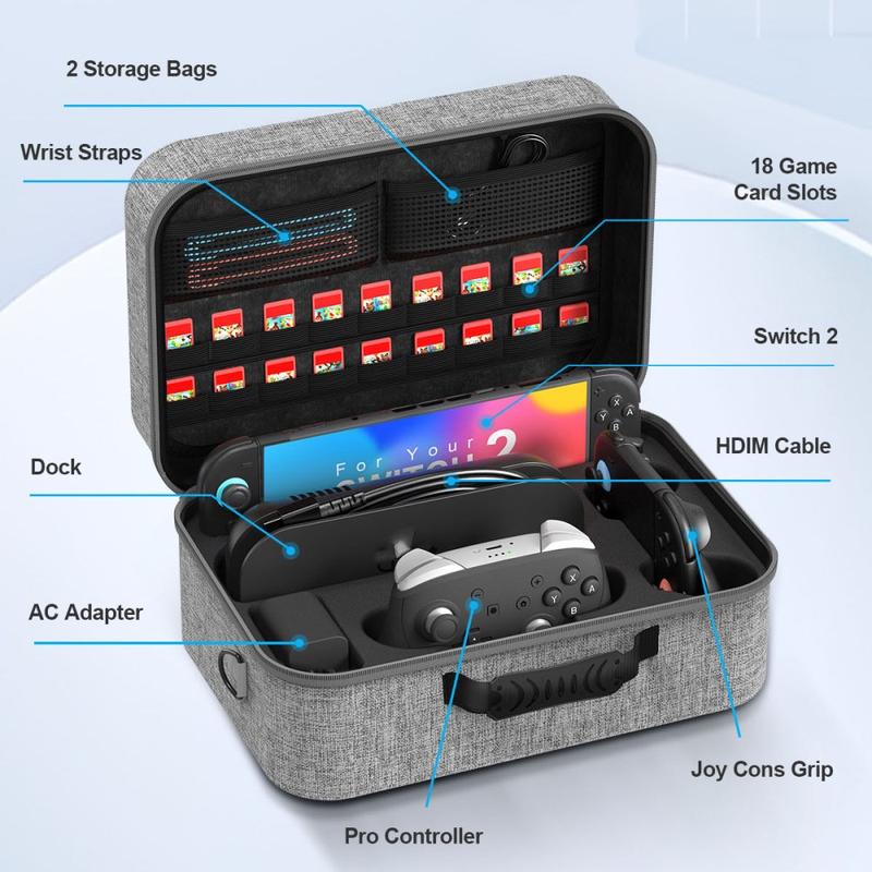 Perfekt för spelare som reser ofta eller vill hålla ordning på sin Nintendo Switch 2 och tillbehör hemma. Perfekt för semestrar, pendling eller spelsessioner med vänner.