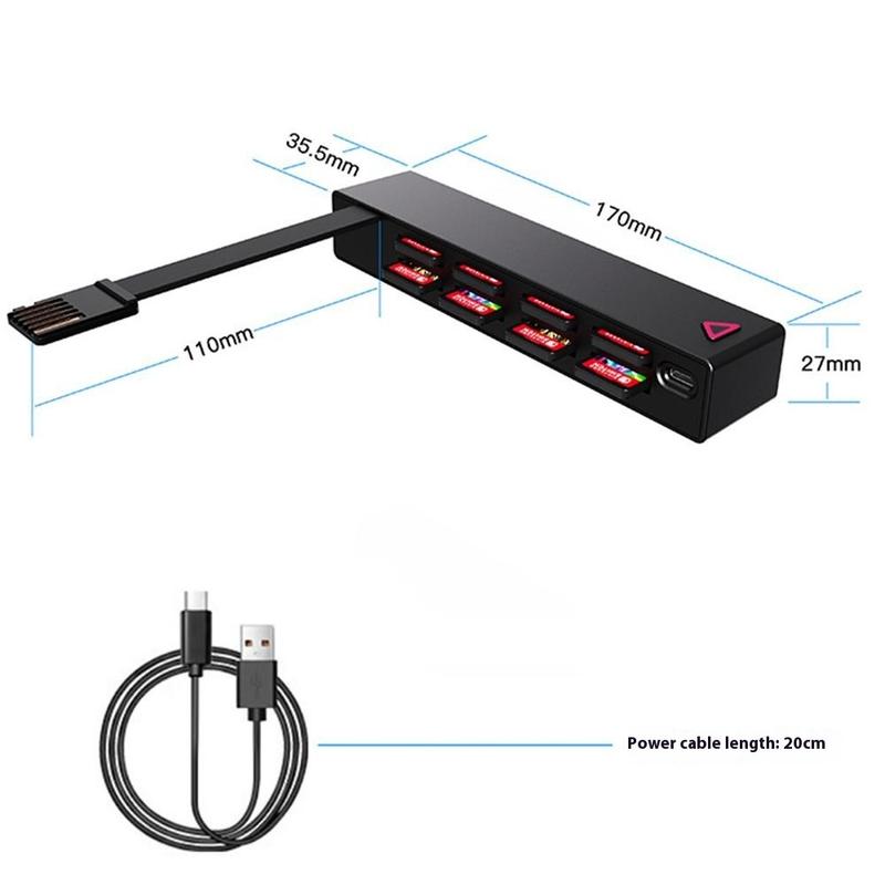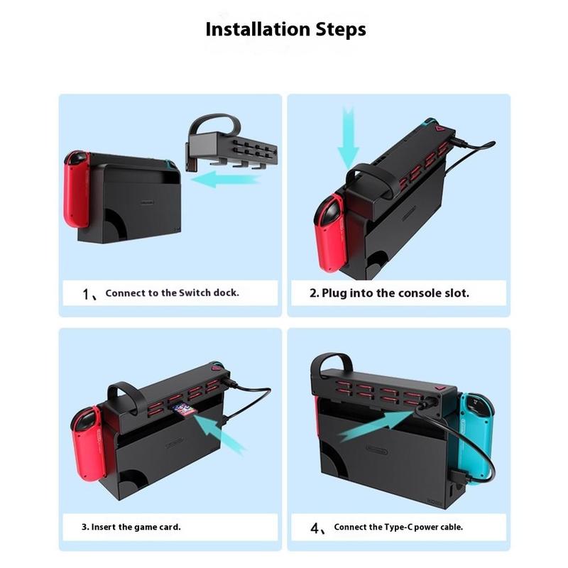 Effektivisera din spelupplevelse med NS02 spelkortsläsare och switcher, utformad för Nintendo Switch och Switch OLED-konsoler. Med trådlös fjärrkontroll, 8 integrerade kortplatser och en kompakt, lättviktig design kan du växla mellan dina favoritspel direkt - ingen manuell växling krävs.
