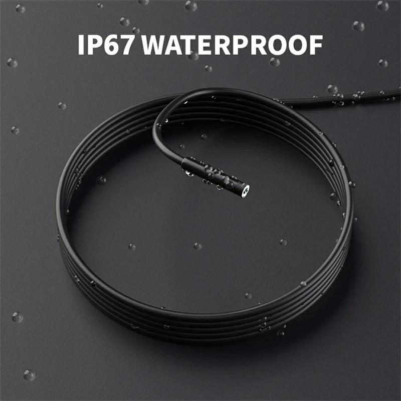 NK-5001Pro 3-in-1 vattentät IP67 inspektionskamera/endoskop är ett mångsidigt industriellt boreskop som är utformat för att anslutas direkt till din mobila enhet. Endoskopet har en HD-kamera som ger tydliga bilder och videor för inspektionsändamål. Kameran är utrustad med en 8 mm diameter LED-hjälpbelysning HD-kamera, med ett högkänsligt chip som möjliggör användning i mörka arbetsmiljöer. Aluminiumröret har en diameter på 5.5mm och objektivet har en brännvidd på 4-10 cm, vilket ger en bred betraktningsvinkel på 76 grader. Endoskopet är vattentätt med en IP67-klass, vilket gör det lämpligt för olika tillämpningar.