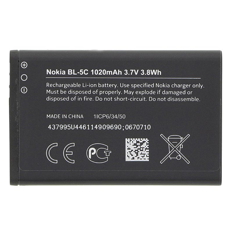 Original Nokia Batteri BL-5C. Li-Ion-baserat batteri på 1020 mAh. Taltid: 2-5 tim Passningstid: 150-200 tim