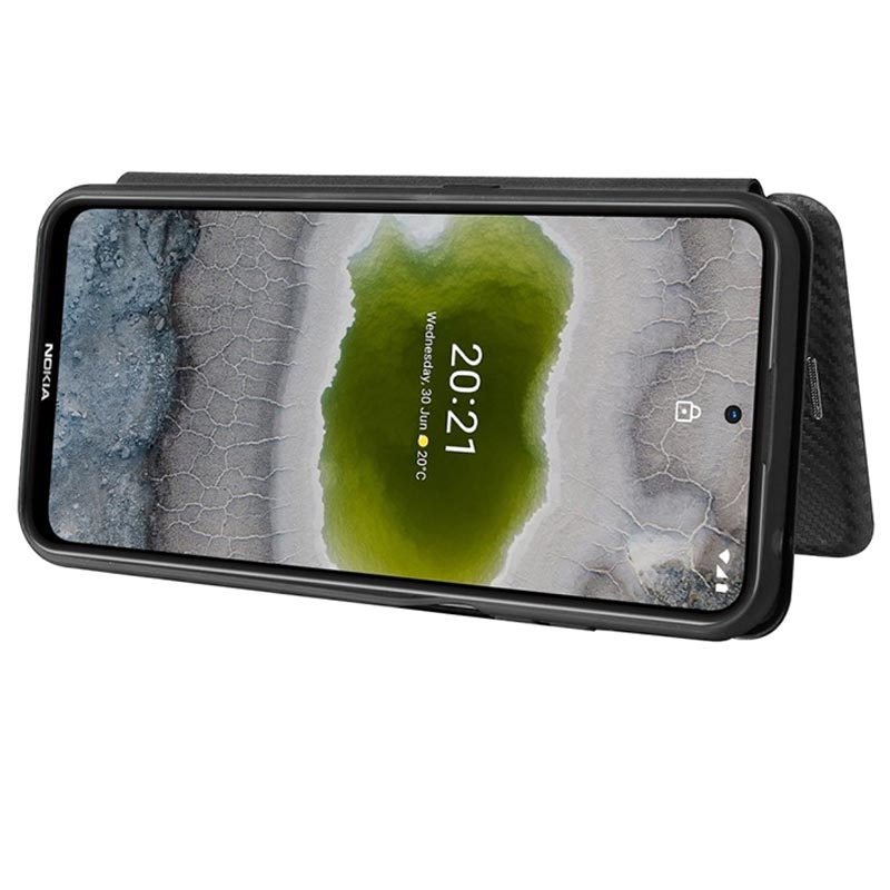 Håll din Nokia X10, X20 säker i det här flipfodralet med kolfiberstruktur.