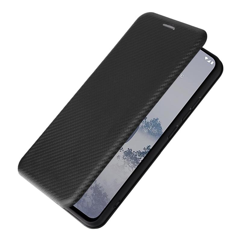 Nokia X30 Flipfodral med Korthållare - Kolfiber - Svart