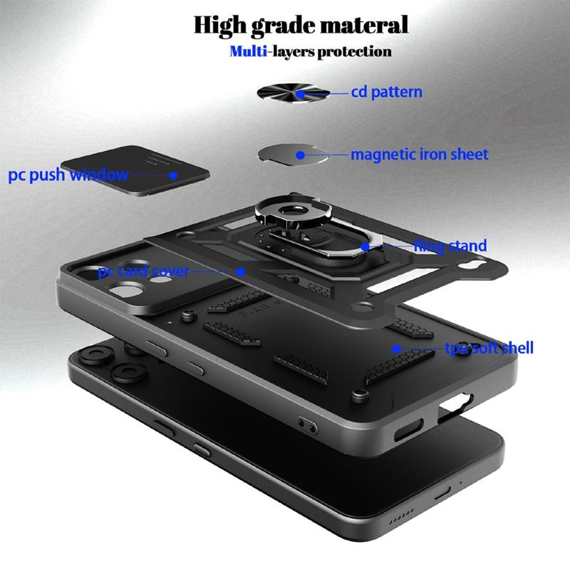 Konstruerad med förstklassig plast, TPU och metallmaterial, är detta fodral för Nothing Phone (3a) Lite designat för att stå emot tidens prövning och ge skydd. Med flera funktioner skyddar det din Nothing Phone (3a) Lite perfekt och gör den även bekväm att använda och titta på tack vare den roterande ringen på baksidan.