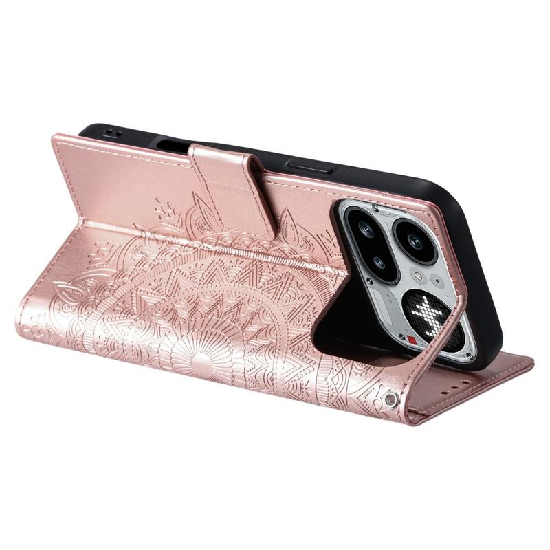 Skydda din telefon med stil med detta Nothing Phone (4a) Pro-fodral med plånboksfunktion och stativ. Detta praktiska flip-fodral är utformat med ett dekorativt mandalamönster och kombinerar vardagligt skydd, kortfack och handsfree-visning i en smidig design.