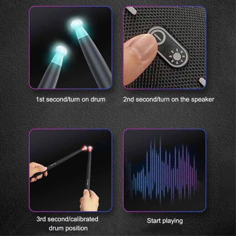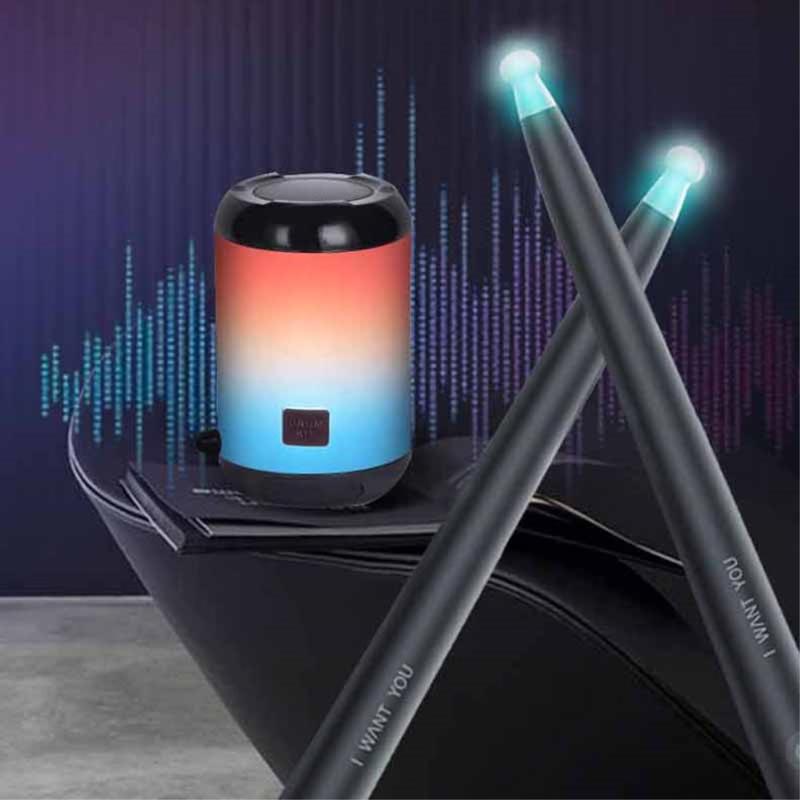 NX05 lufttrumset kombinerar bärbar träning, LED-visualisering, en högkvalitativ Bluetooth-högtalare och en fotgivare för baskontroll, vilket gör det till ett roligt, praktiskt och nybörjarvänligt sätt att lära sig och njuta av att spela trummor var som helst.