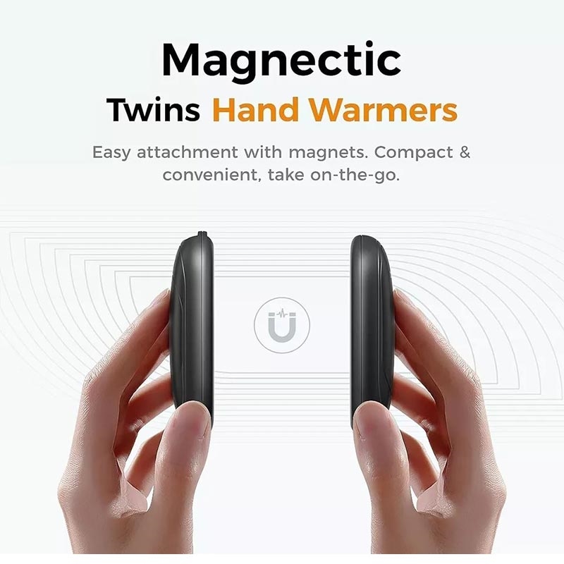 - Magnetisk design - Fäst båda värmarna tillsammans för bekväm förvaring, eller håll dem åtskilda för att värma varje hand för sig.
