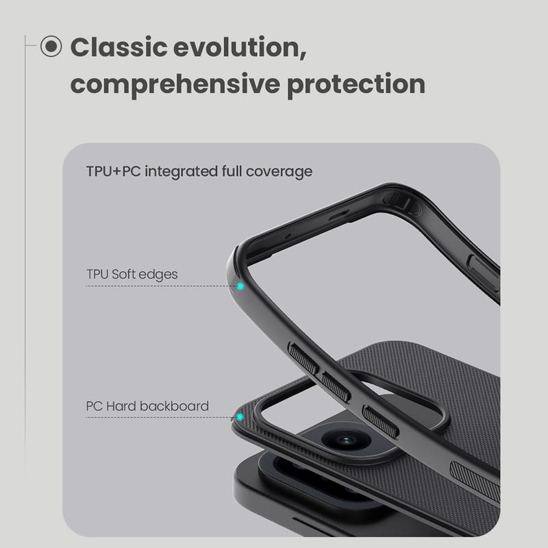 Nillkin har designat denna nya, starkare Pro-version av deras Super Frosted-skal som passar din värdefulla OnePlus 15. Det har ett ultimat fallskydd tack vare designen med två olika material - baksida av polykarbonat och ram av TPU-material.