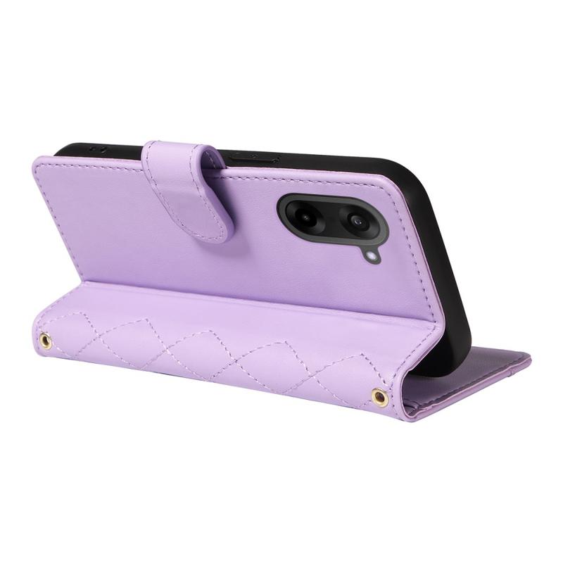 Skydda din OnePlus Ace 5 Racing, Nord CE5 med detta lyxiga quiltade plånboksfodral. Fodralet är tillverkat av TPU-material överdraget med PU-läder och är reptåligt och fingeravtrycksskyddat så att din telefon ser snygg och stilren ut. Sömmarna bildar ett rombiskt rutmönster som ger fodralet en modern och vacker touch. Den upphöjda kanten på kameran och skärmen ger ett effektivt skydd mot repor, medan de exakta utskärningarna ger full åtkomst till alla knappar, portar och andra funktioner. Plånboksdesignen gör det enkelt att förvara viktiga kort och kontanter, och de medföljande sugkopparna kan användas som ett stöd för handsfree-användning. Fodralet ger extra skydd mot repor, stötar, fall och vardagliga skador och levereras även med en axelrem och en handledsrem för extra bekvämlighet.