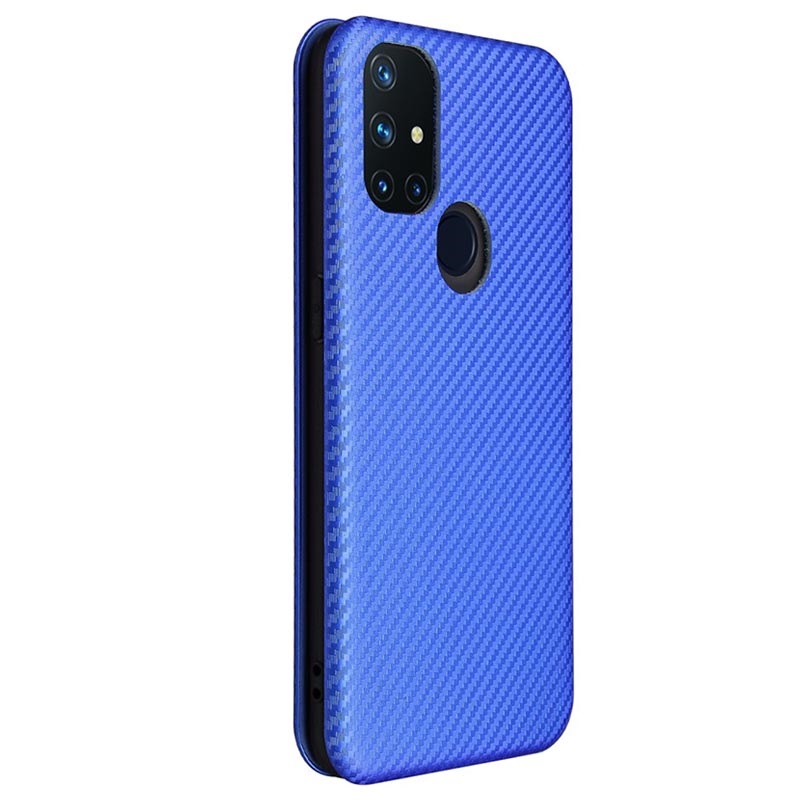 OnePlus Nord N10 5G Flipfodral - Kolfiber - Blå