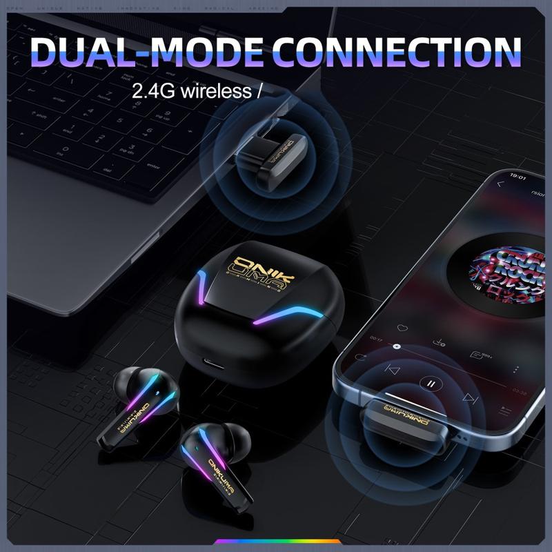 Ta ditt spelande och din vardagliga lyssning till nästa nivå med ONIKUMA T27 trådlösa hörlurar. De är designade för spelare som vill ha snabbare respons och flexibel anslutning och stöder både 2,4 GHz trådlöst och Bluetooth 5.3, vilket ger dig en installation med låg latens för spel och ett bekvämt trådlöst alternativ för musik, samtal och daglig användning. Den ergonomiska formen är gjord för längre sessioner och hjälper öronsnäckorna att sitta bekvämt oavsett om du spelar hemma, pendlar eller tränar.