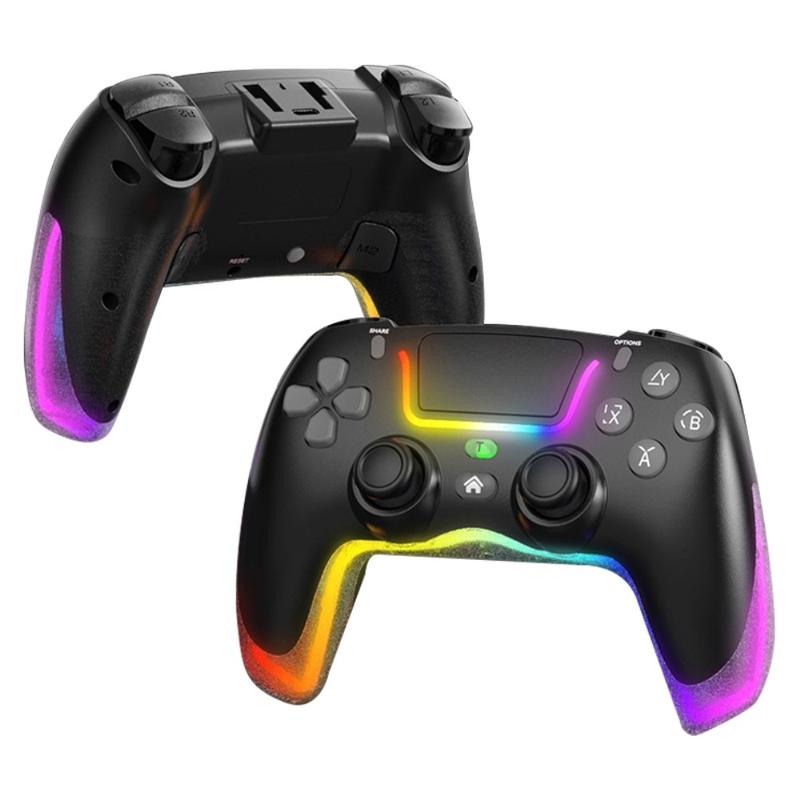 P07 Dazzle Lighting Wireless Bluetooth Controller för PS4 kombinerar stil, komfort och pålitlig prestanda och ger en raffinerad spelupplevelse för både casual- och hardcore-spelare. Dess bländande belysning ger en personlig touch, medan den ergonomiska knapplayouten och de responsiva kontrollerna håller dig på toppen av ditt spel. Ett batteri med lång livslängd och en stabil trådlös anslutning gör den här handkontrollen till ett måste för alla PS4-installationer.