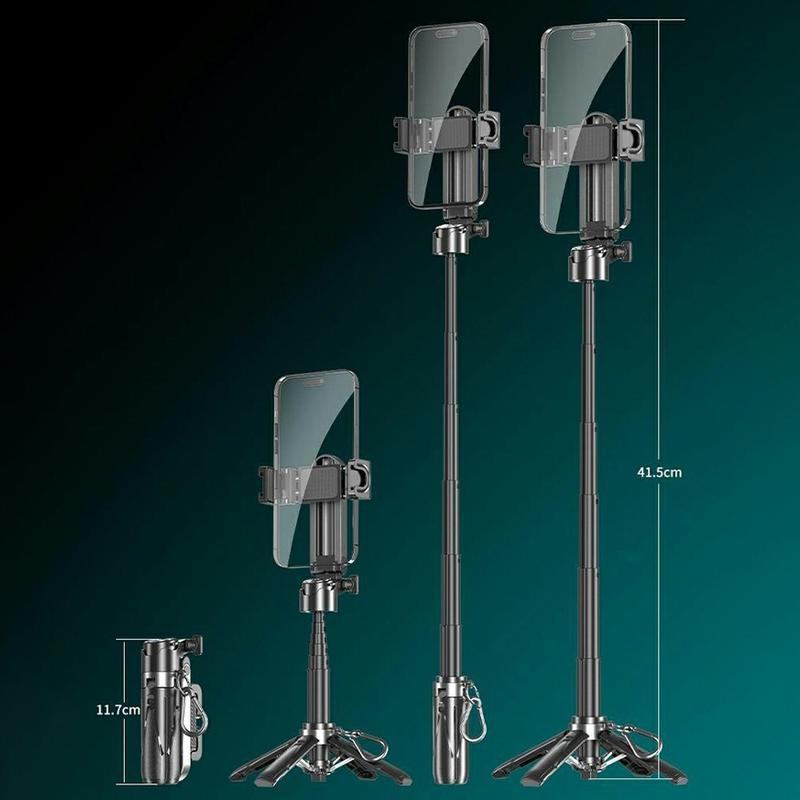 P15-Y mini selfie stick tripod kombinerar en selfie stick, ett stabilt stativ, en trådlös fjärrkontroll och en kompakt fyllnadslampa i ett enda lättviktigt tillbehör. Den är utformad för kreatörer i farten och ger flexibilitet och bekvämlighet för fotografering, videoinspelning och livestreaming.