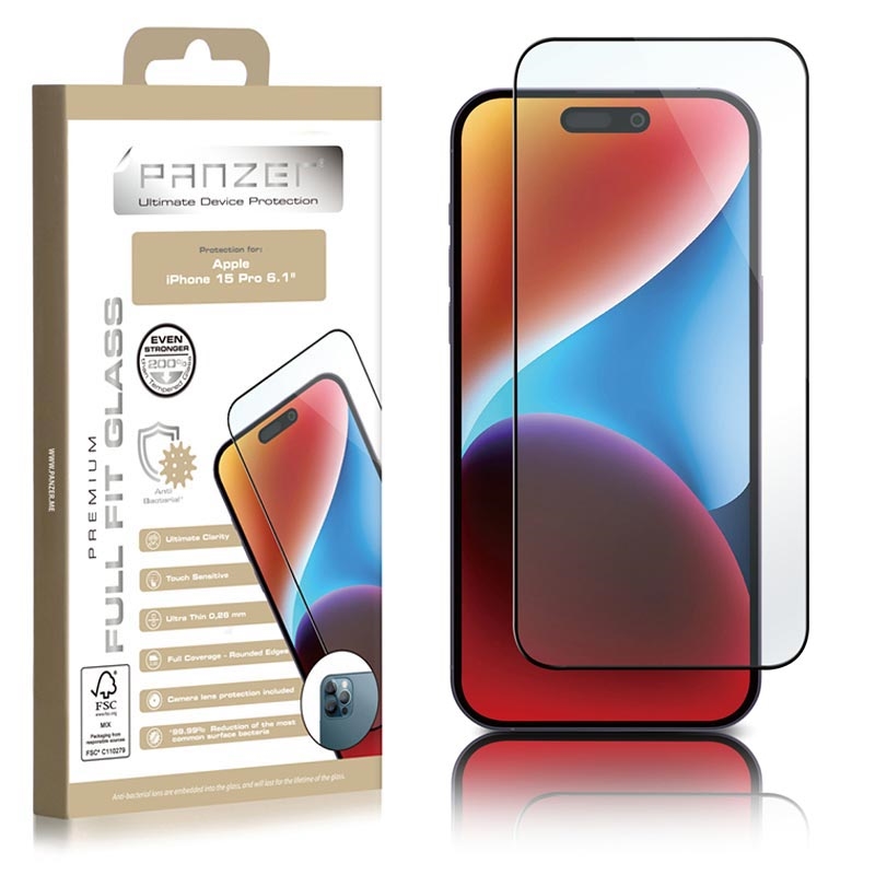 Panzer Premium Full-Fit Skärmskydd i Härdat Glas till iPhone 15 Pro