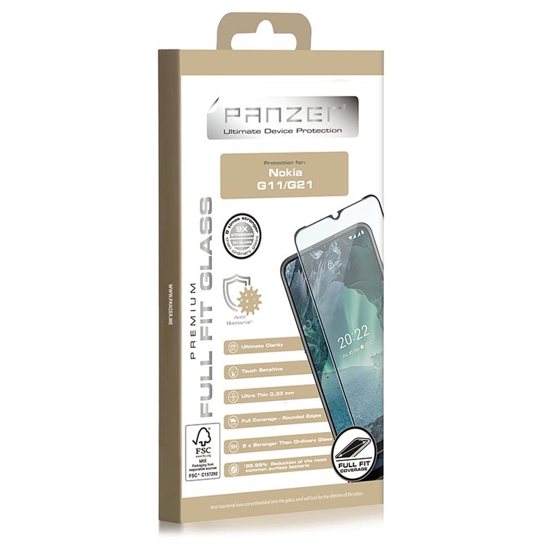 Håll displayen på din Nokia G11, Nokia G21 repfri med Panzer Premium Full-Fit skärmskydd.