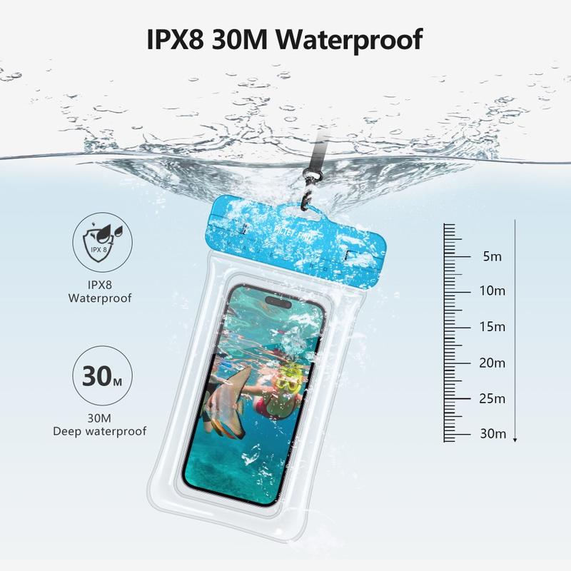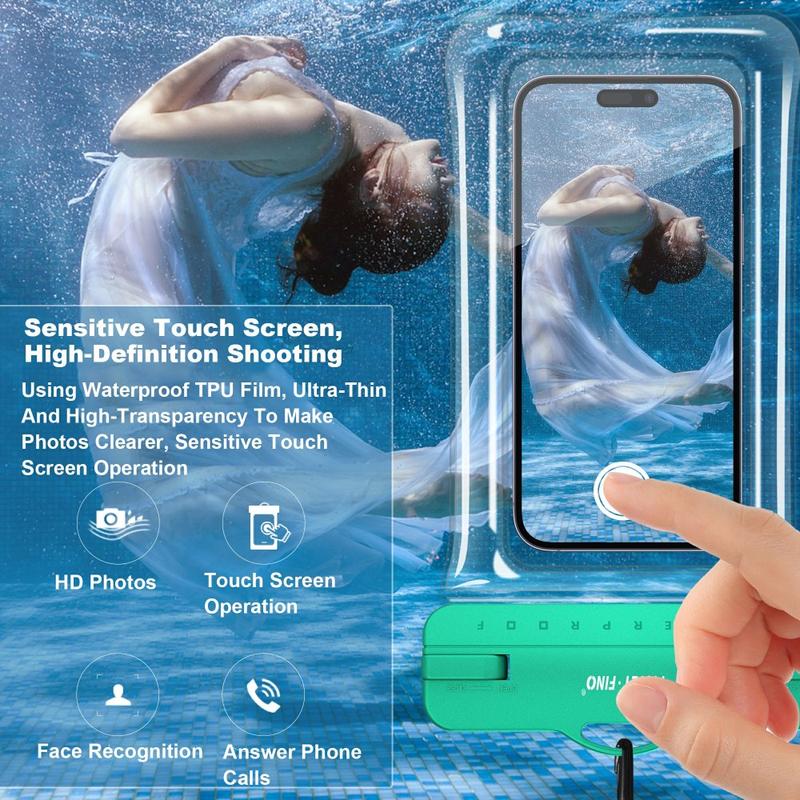 Kroppsdelen är tillverkad av högkvalitativt mjukt TPU-material, gör att pekskärmsfunktionen är helt tillgänglig och kan ta bilder med kamera under vattnet. Mycket vattentät IPX8 vattentät kvalitet, lämplig för alla typer av utomhusaktiviteter: båtliv, fiske, segling, kanotpaddling, vattentemapark, camping, bergsklättring, offshore-arbete, regniga dagar utomhusarbete etc.