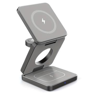 Fickstorlek 3-i-1 vikbar magnetisk trådlös laddare - snabbladdningsstation för iPhone, klockor och öronsnäckor