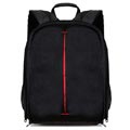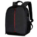 Denna hållbara, välorganiserade kamera-ryggsäck håller en DSLR kamera med en fäst lins såväl som två extra linser och två blixtar. Allt detta hålls i huvudfacket av väskan mellan de justerbara vadderade avdelarna. Den håller också en mindre surfplatta i den vadderade fickan på framluckan.