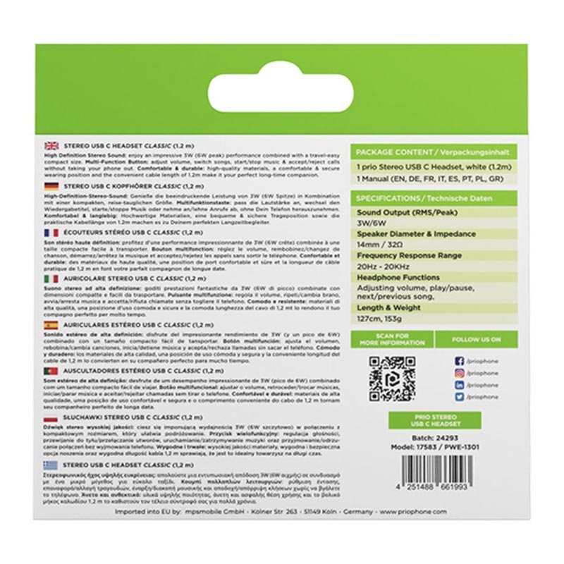Prio Classic In-Ear USB-C Hörlurar med Mikrofon
