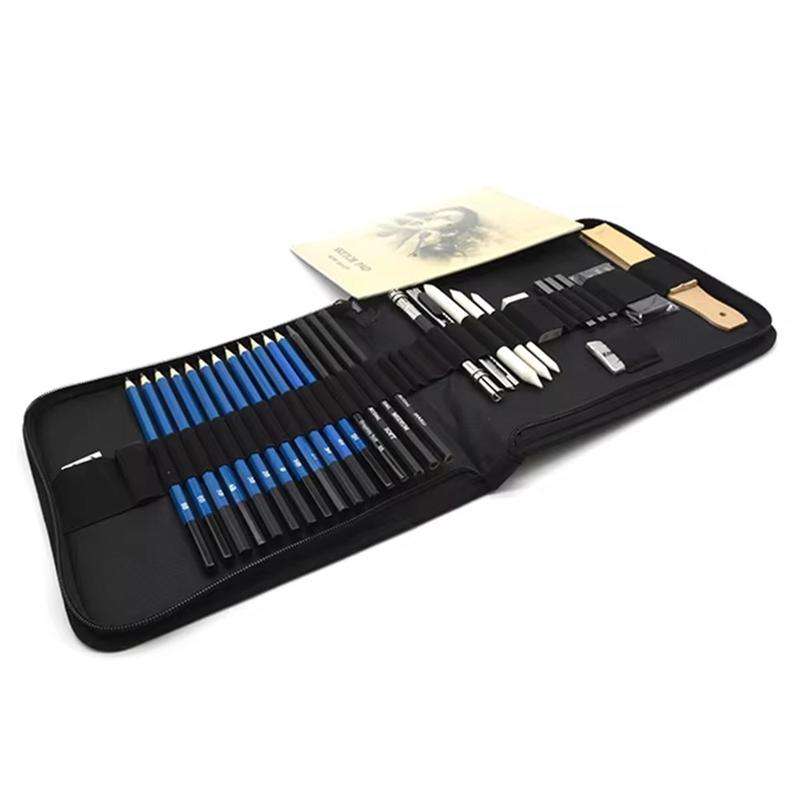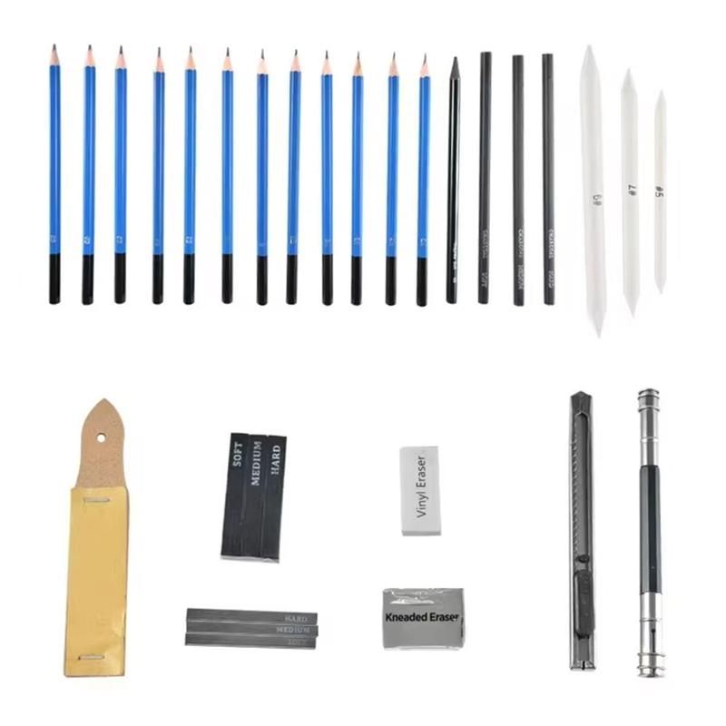 Lyft dina konstnärliga ansträngningar med detta professionella skiss- och ritpennset med 35 delar. Detta allt-i-ett-kit är utformat för både blivande konstnärer och erfarna proffs och innehåller ett mångsidigt utbud av verktyg för att förverkliga dina visioner. Oavsett om du skissar, skuggar eller detaljerar säkerställer denna uppsättning precision och kvalitet i varje streck.