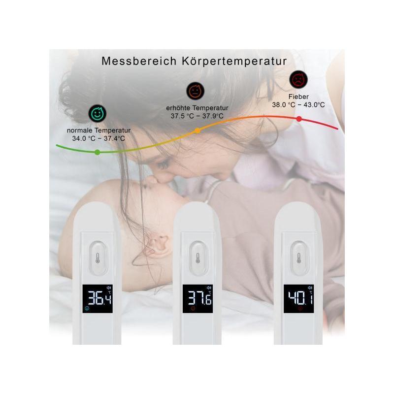 Denna panntermometer är ett måste för föräldrar och vårdgivare som vill ha ett tillförlitligt och hygieniskt sätt att övervaka kroppstemperaturen. Med sin kontaktlösa funktion, snabba resultat och användarvänliga design ger den sinnesfrid oavsett om du är hemma eller på språng. Den 3-färgade feberindikatorn och det tysta läget gör den särskilt användbar för övervakning nattetid utan att sömnen störs.