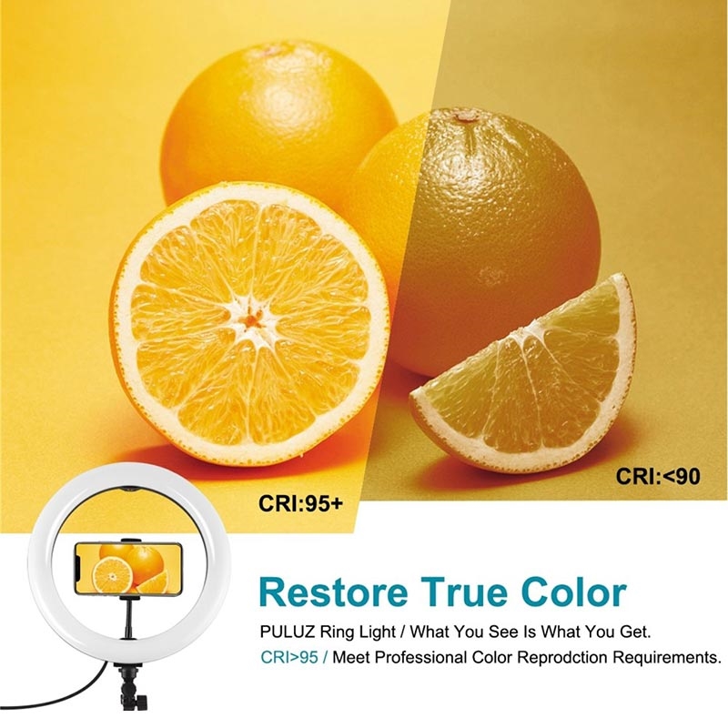 Ringlampan är tillverkad av 2x60 energibesparande LED-pärlor, den har utmärkt värmeavledning, konstant strömförsörjning och hög färgåtergivning, mjukar upp ljuskällan och förstärker hudtonen vid porträttfotografering