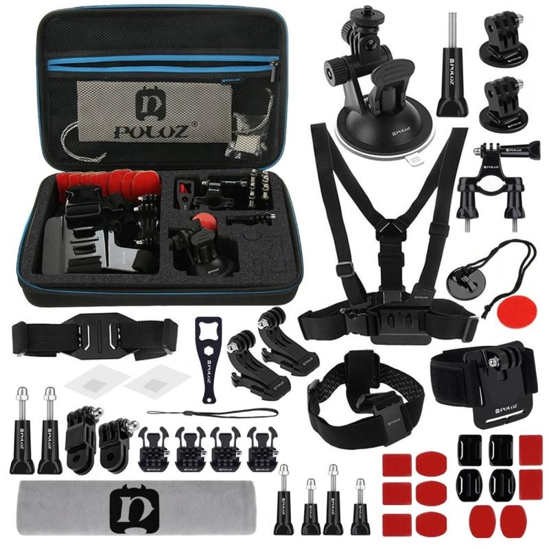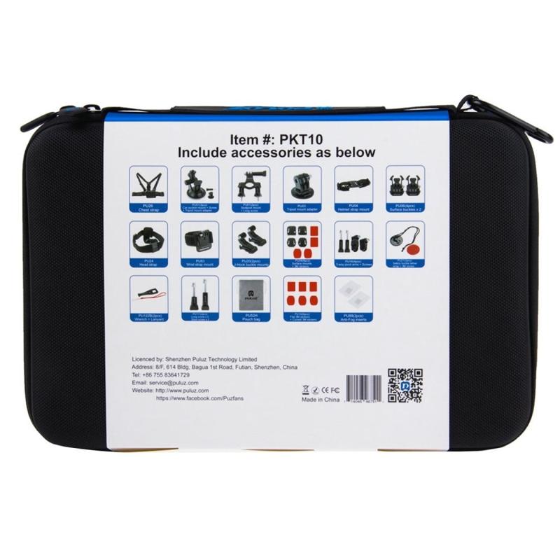 PULUZ PKT10 45-i-1 tillbehörssats för actionkamera - stort förvaringsfodral, bröst- och huvudfästen, flytande handtagssats för GoPro