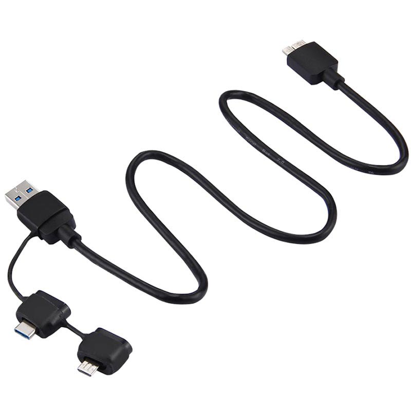 - Kabeltyp: microUSB 3.0 till USB 3.0, microUSB 2.0 och Typ-C