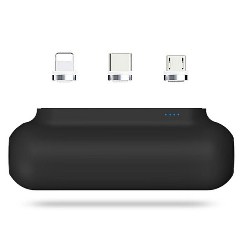 PUP-0373-V2 Mini Powerbank 3200mAh - Bärbar laddare med magnetiska Lightning-, Micro-USB- och USB-C-kontakter, LED-batteriindikator
