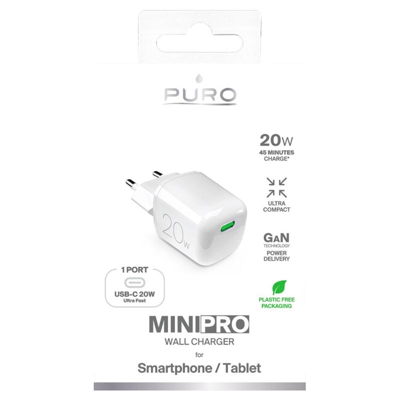 Puro Minipro GaN USB-C Väggladdare - 20W, Power Delivery
