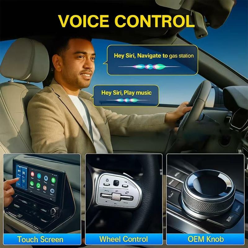 Q1AS 3-i-1 Smart AI Box omvandlar fabriksinstallerade kabelanslutna CarPlay-system till fullständig trådlös anslutning. Med stöd för trådlös CarPlay, trådlös Android Auto och AirPlay i en enda kompakt låda ger den en modern kabelfri upplevelse till bilens befintliga infotainmentsystem.