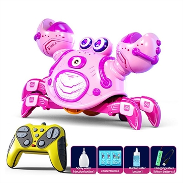 Q227 Fjärrstyrd mecha-krabba för barn - 2,4 GHz RC-leksak som sprutar bubblor och vatten med LED-belysning, musik och 360°-rotation