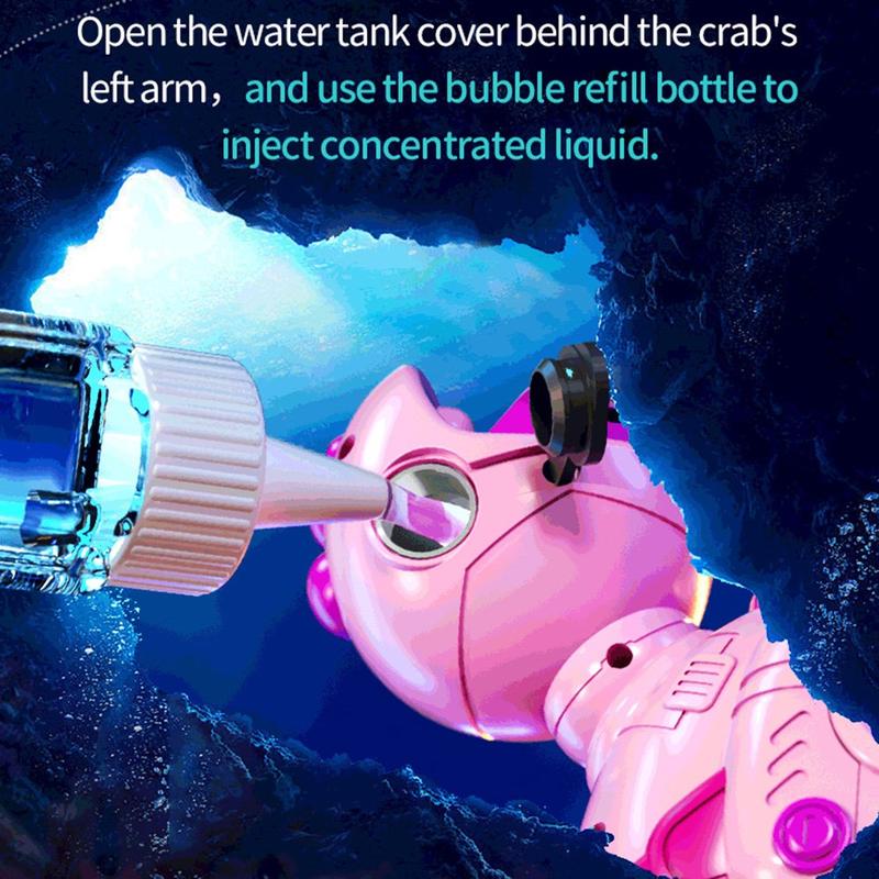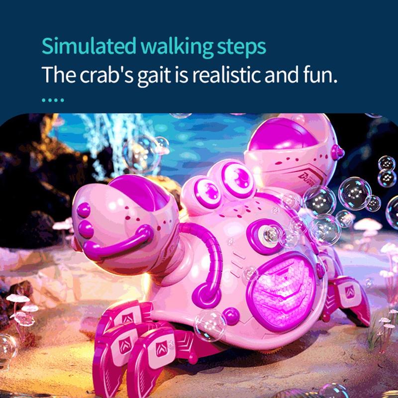 Med stöd för 2,4 GHz-fjärrkontroll och en räckvidd på upp till 40 meter kan krabban röra sig, rotera, spruta dimma och skapa bubblor för en mer underhållande lekupplevelse. Den hållbara ABS-kroppen och de rundade kanterna gör den praktisk för daglig användning, medan det automatiska demoläget ger extra kul.