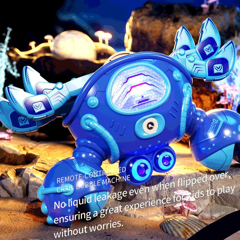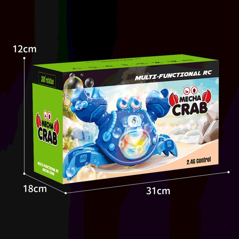 Med stöd för 2,4 GHz-fjärrkontroll och en räckvidd på upp till 40 meter kan krabban röra sig, rotera, spruta dimma och skapa bubblor för en mer underhållande lekupplevelse. Den hållbara ABS-kroppen och de rundade kanterna gör den praktisk för daglig användning, medan det automatiska demoläget ger extra kul.