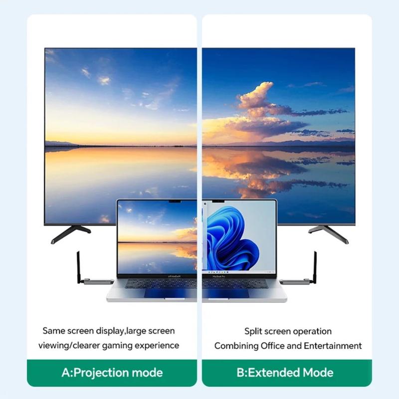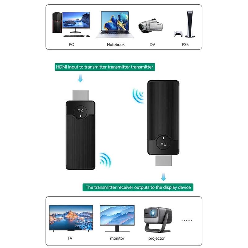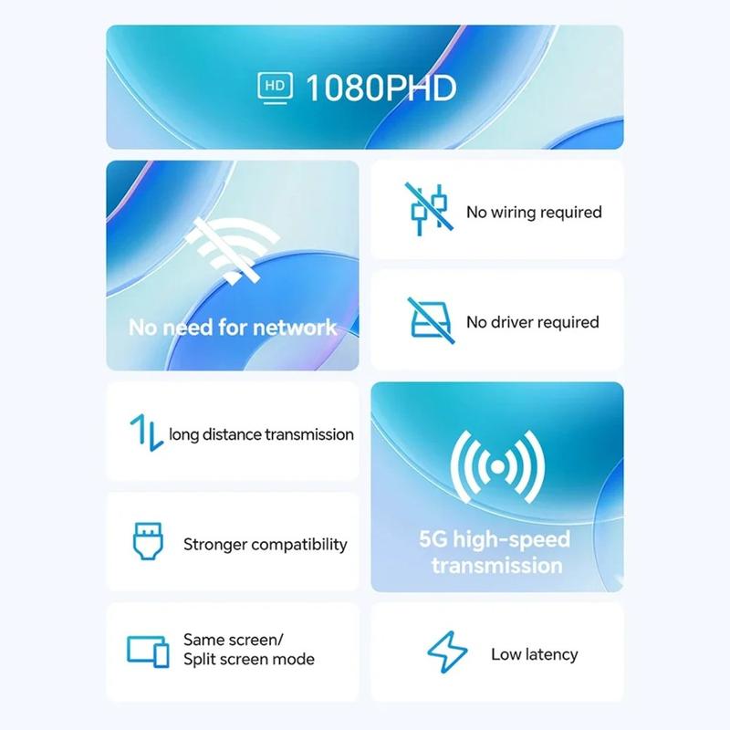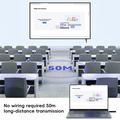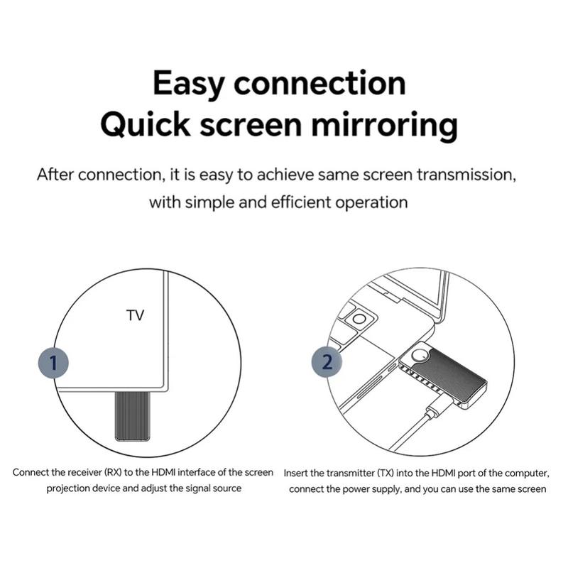 Klipp HDMI-sladden och dela din skärm på några sekunder. Q50-adaptern med vertikala ränder överför Full-HD-video och stereoljud direkt från en bärbar dator till en projektor eller TV på upp till 50 m avstånd, med hjälp av en snabb dual-band 5GHz/2,4 GHz-länk. Ingen programvara, inga drivrutiner, inget Wi-Fi-nätverk krävs - anslut bara Type-C-sändaren till din dator, mottagaren till skärmens HDMI-port och börja presentera. Automatisk lägesdetektering, en jämn uppdateringsfrekvens på 60 Hz och inbyggd bildbalansering gör att bilder, kalkylblad och videor blir kristallklara för alla platser i rummet.