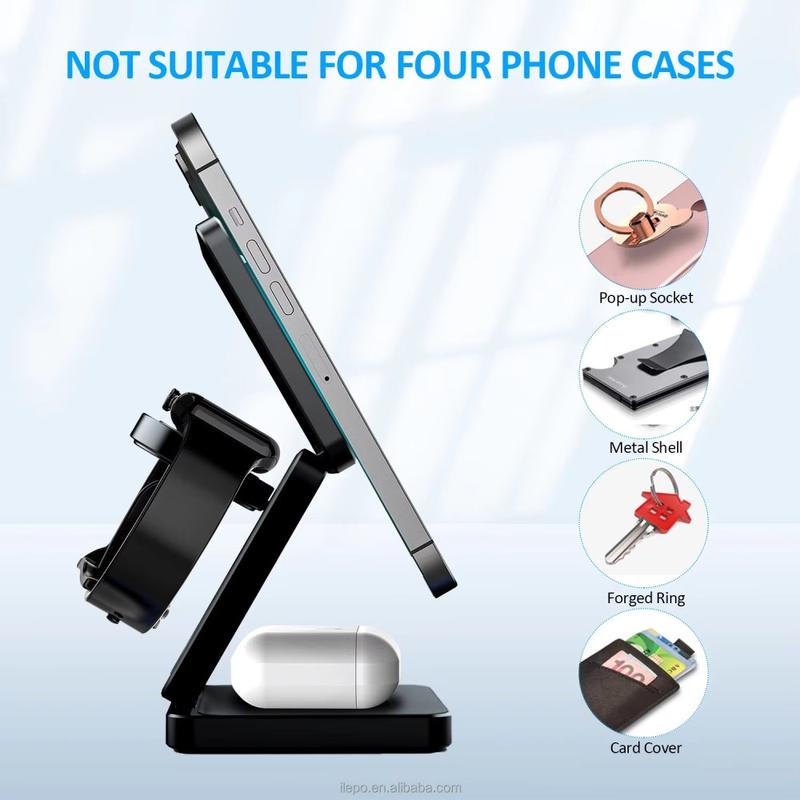 - 3-i-1 trådlös laddning för telefon, Apple Watch och öronsnäckor
