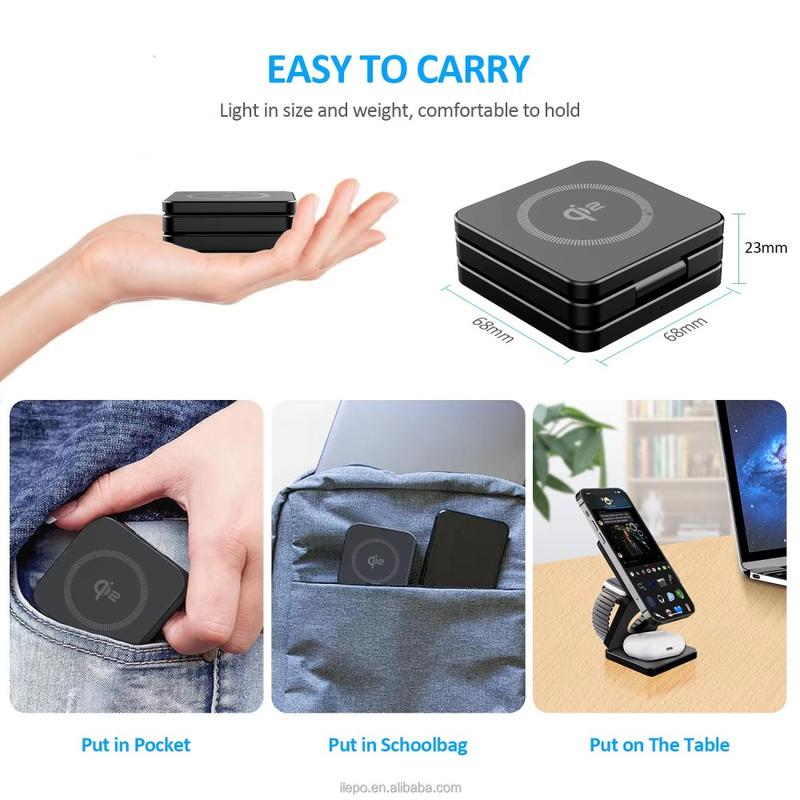 - 1 × Qi2 3-i-1 vikbart magnetiskt trådlöst laddningsställ